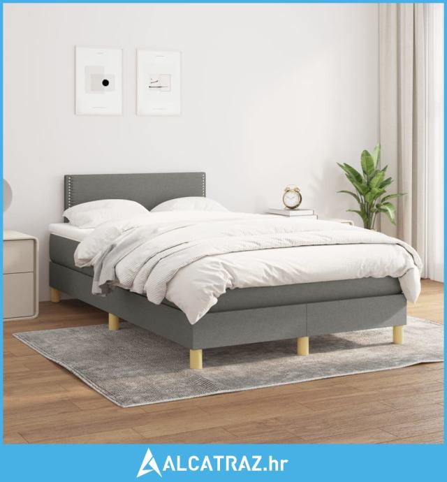 Krevet s oprugama i madracem tamnosivi 120 x 200 cm od tkanine - NOVO