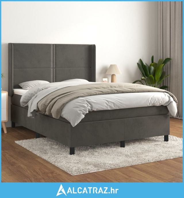 Krevet s oprugama i madracem tamnosivi 140x190 cm baršunasti - NOVO