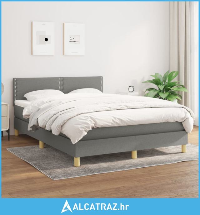 Krevet s oprugama i madracem tamnosivi 140x190 cm od tkanine - NOVO