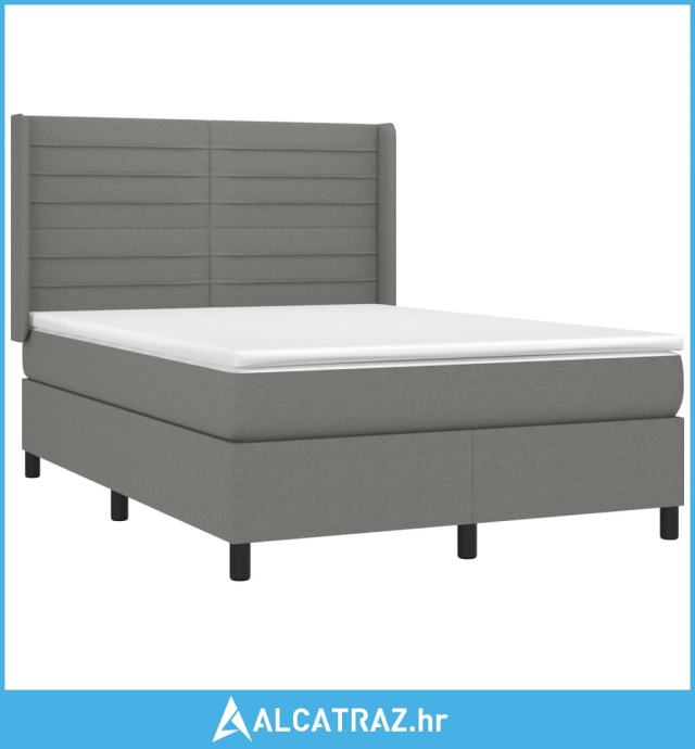 Krevet s oprugama i madracem tamnosivi 140x190 cm od tkanine - NOVO