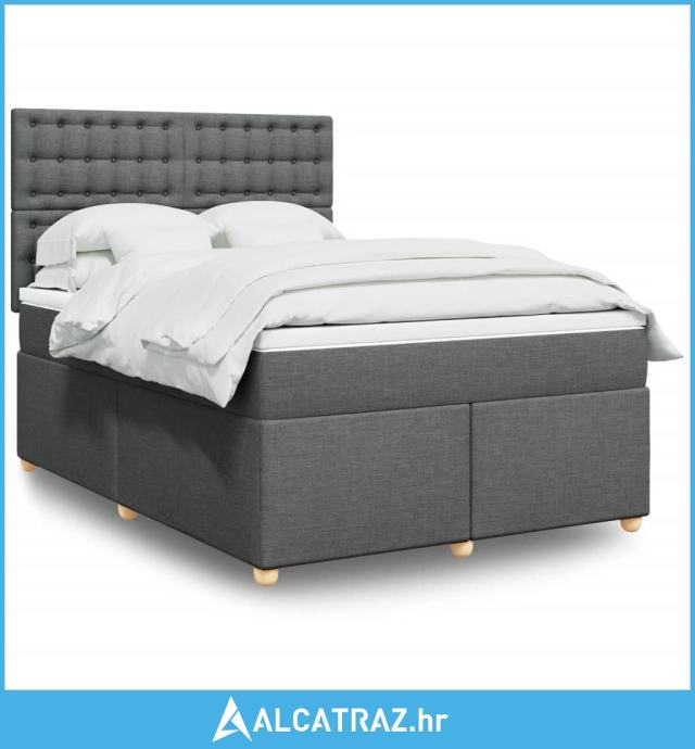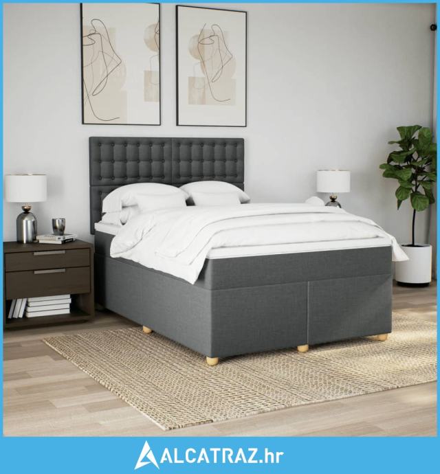 Krevet s oprugama i madracem tamnosivi 140x190 cm od tkanine - NOVO