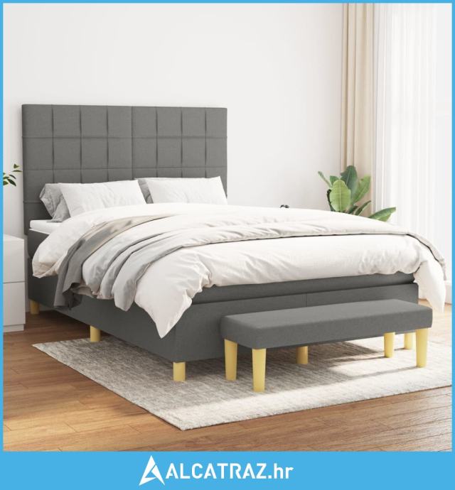 Krevet s oprugama i madracem tamnosivi 140x190 cm od tkanine - NOVO