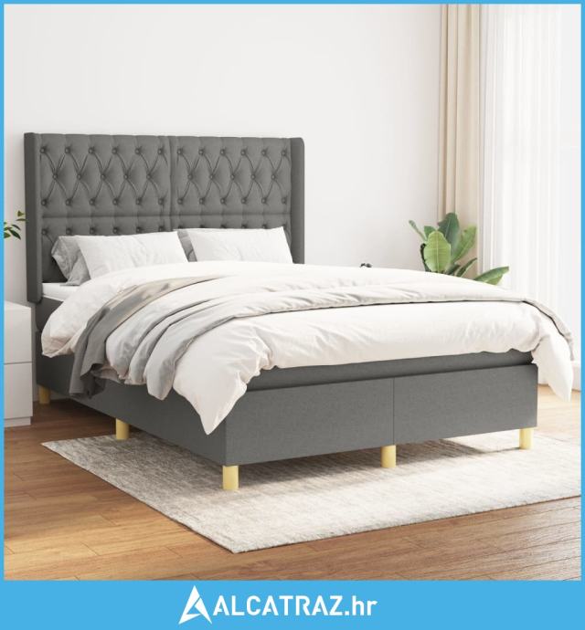 Krevet s oprugama i madracem tamnosivi 140x190 cm od tkanine - NOVO