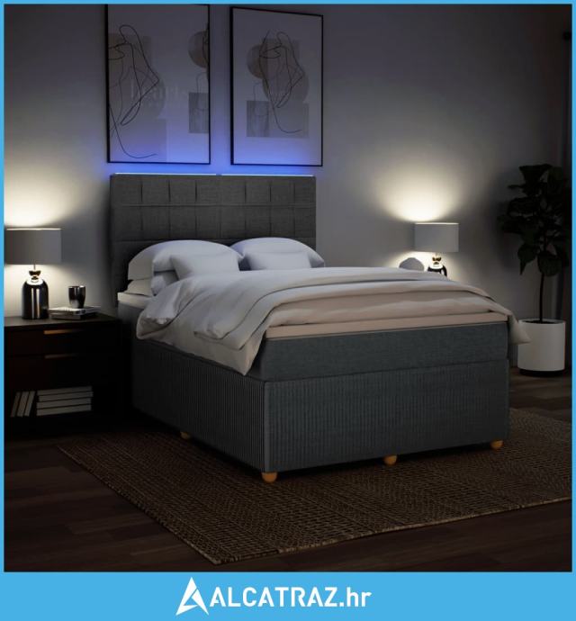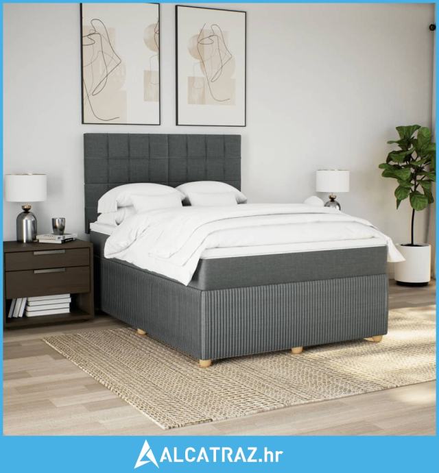 Krevet s oprugama i madracem tamnosivi 140x190 cm od tkanine - NOVO