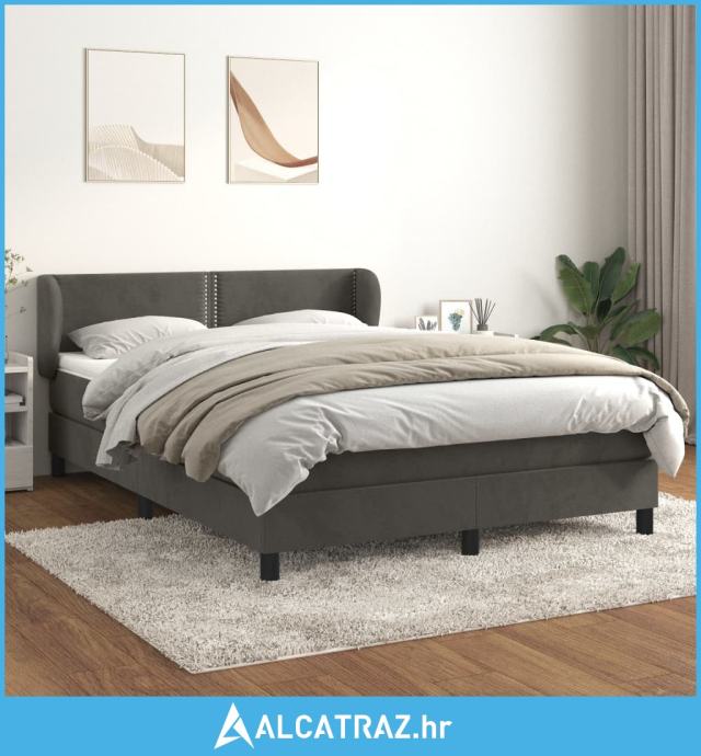 Krevet s oprugama i madracem tamnosivi 140x200 cm baršunasti - NOVO