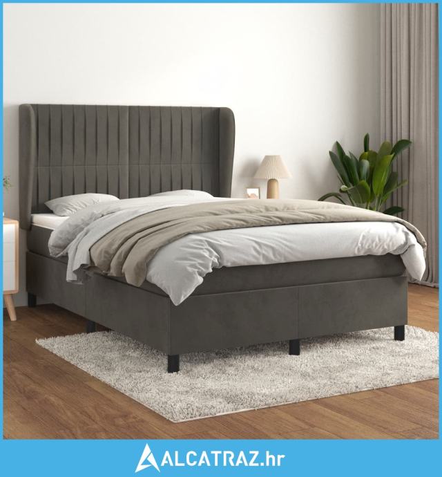 Krevet s oprugama i madracem tamnosivi 140x200 cm baršunasti - NOVO