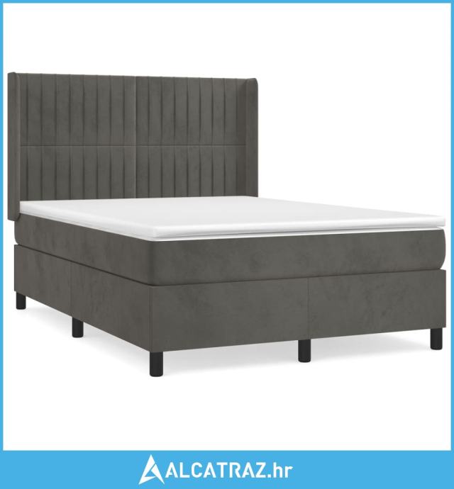Krevet s oprugama i madracem tamnosivi 140x200 cm baršunasti - NOVO