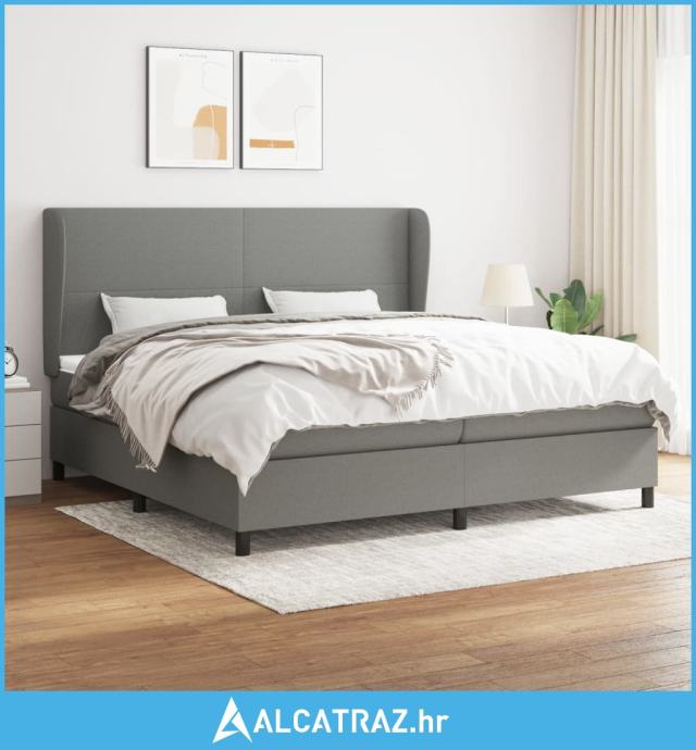 Krevet s oprugama i madracem tamnosivi 200 x 200 cm od tkanine - NOVO