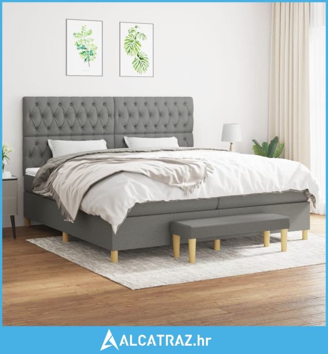 Krevet s oprugama i madracem tamnosivi 200 x 200 cm od tkanine - NOVO