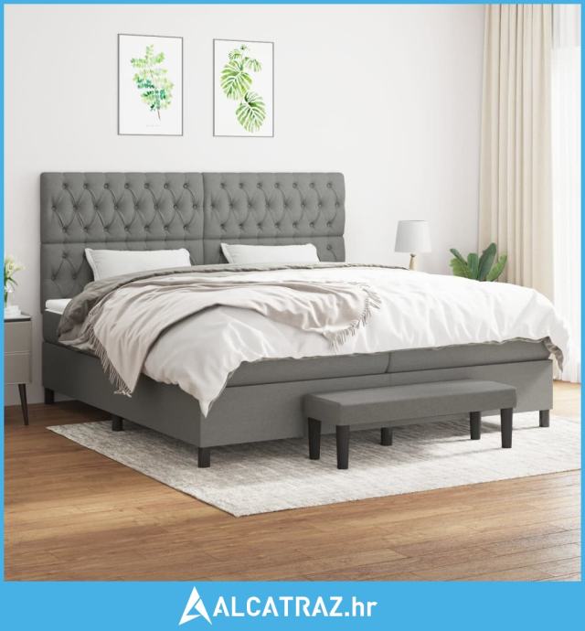 Krevet s oprugama i madracem tamnosivi 200 x 200 cm od tkanine - NOVO