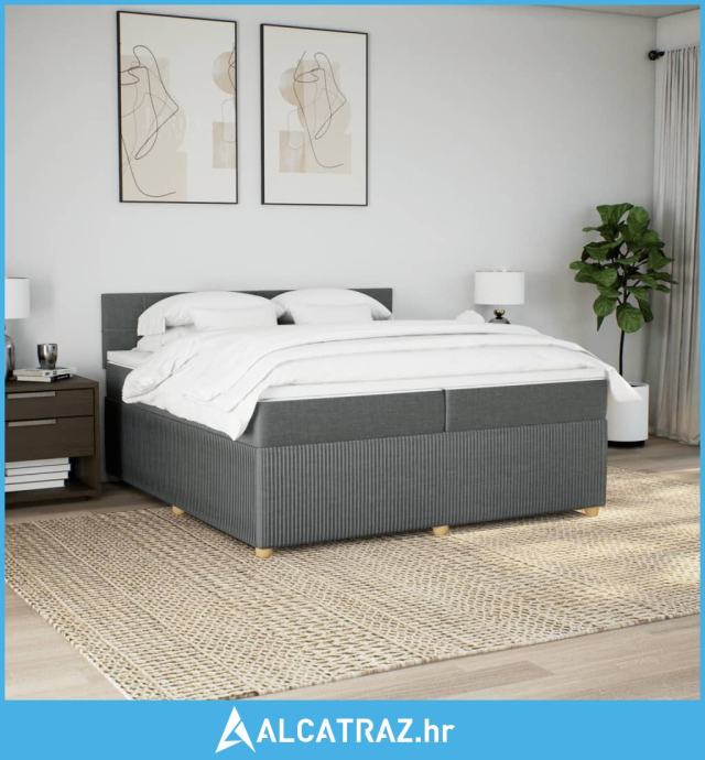 Krevet s oprugama i madracem tamnosivi 200 x 200 cm od tkanine - NOVO