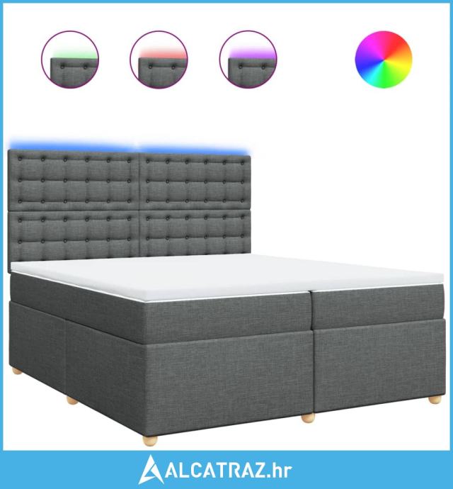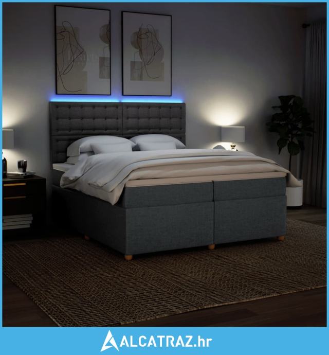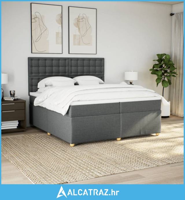Krevet s oprugama i madracem tamnosivi 200 x 200 cm od tkanine - NOVO