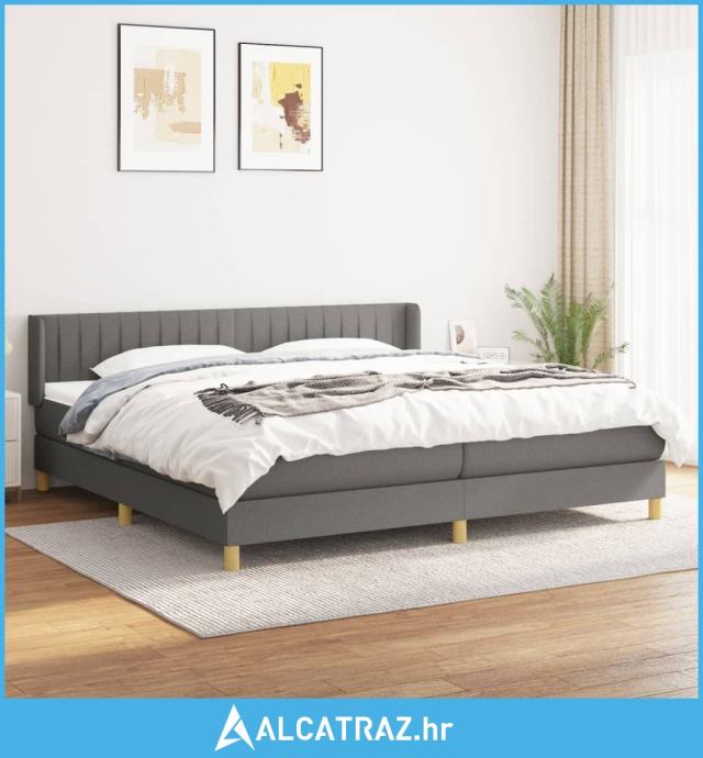 Krevet s oprugama i madracem tamnosivi 200 x 200 cm od tkanine - NOVO