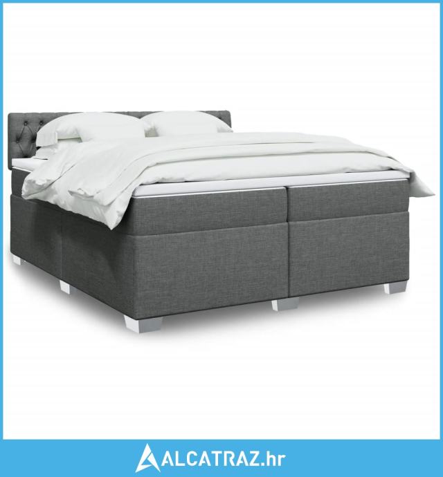 Krevet s oprugama i madracem tamnosivi 200 x 200 cm od tkanine - NOVO