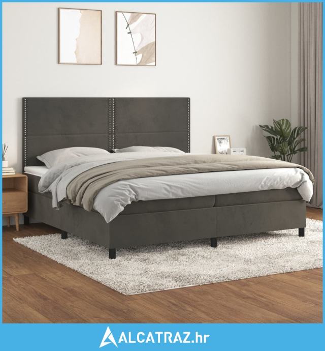 Krevet s oprugama i madracem tamnosivi 200x200 cm baršunasti - NOVO