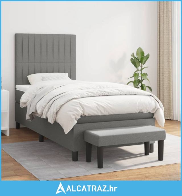 Krevet s oprugama i madracem tamnosivi 90 x 190 cm od tkanine - NOVO