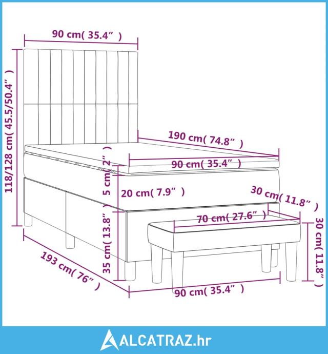 - Dimenzije: 90 x 190 x 20 cm (Š x D x V)