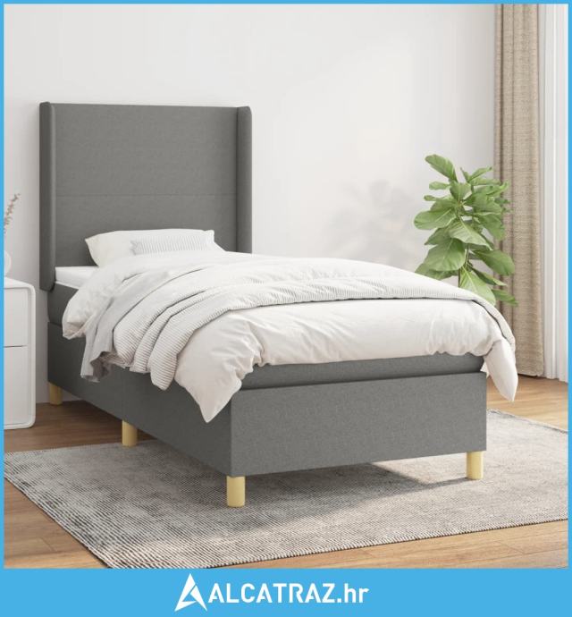 Krevet s oprugama i madracem tamnosivi 90 x 190 cm od tkanine - NOVO