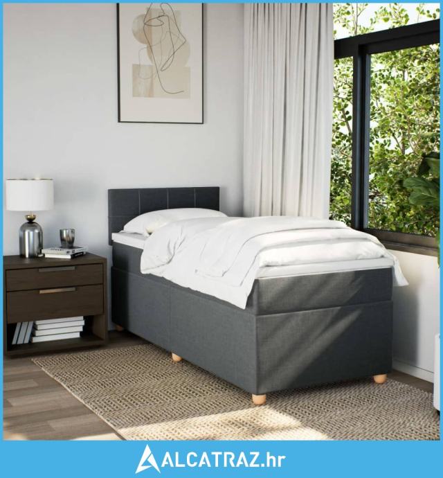 Krevet s oprugama i madracem tamnosivi 90 x 190 cm od tkanine - NOVO