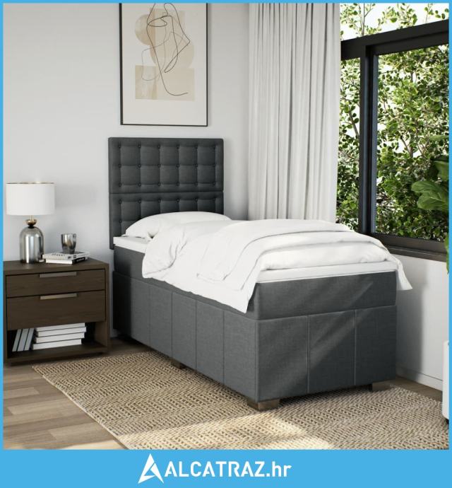 Krevet s oprugama i madracem tamnosivi 90 x 190 cm od tkanine - NOVO