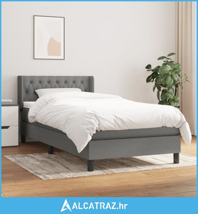 Krevet s oprugama i madracem tamnosivi 90 x 190 cm od tkanine - NOVO