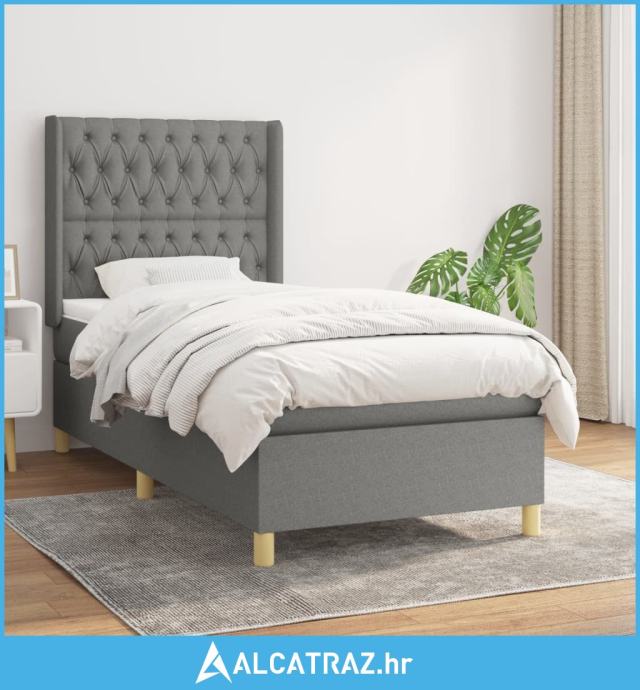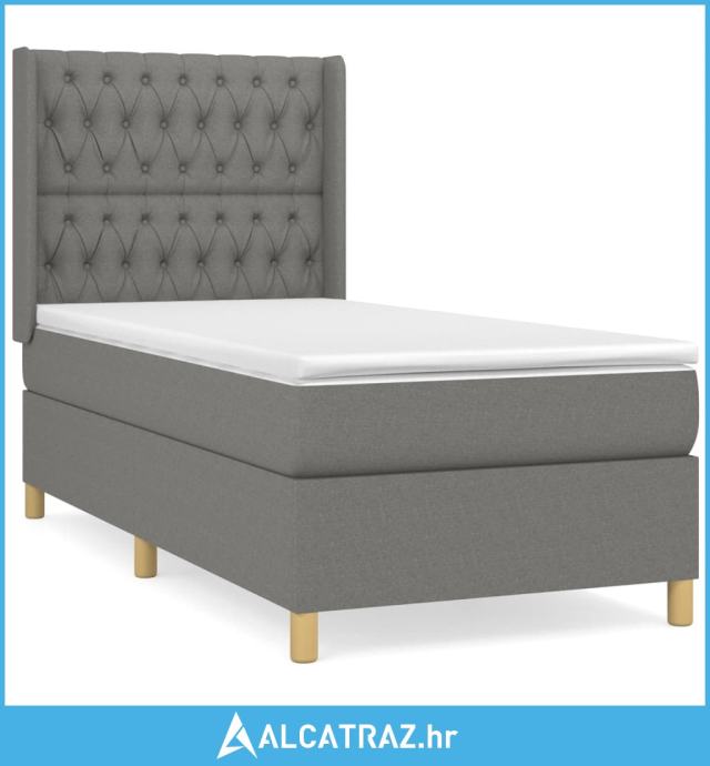 Krevet s oprugama i madracem tamnosivi 90x200 cm od tkanine - NOVO