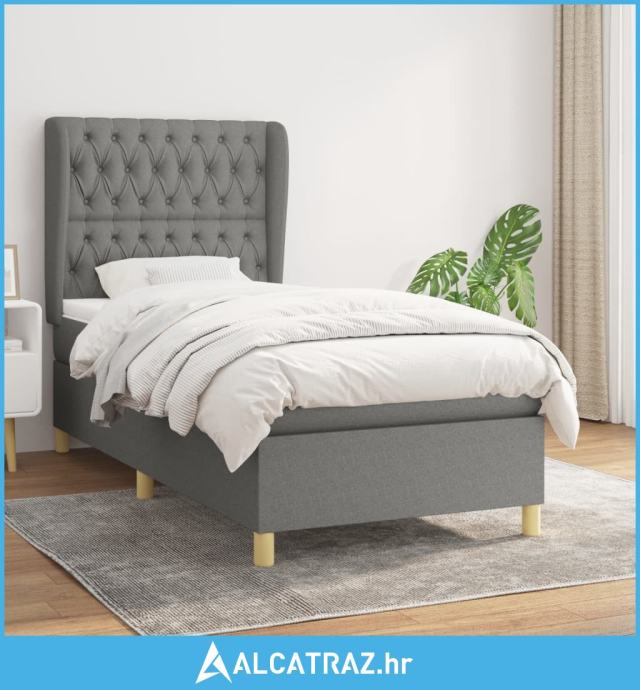 Krevet s oprugama i madracem tamnosivi 90x200 cm od tkanine - NOVO