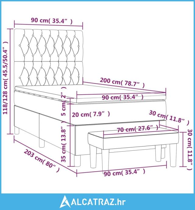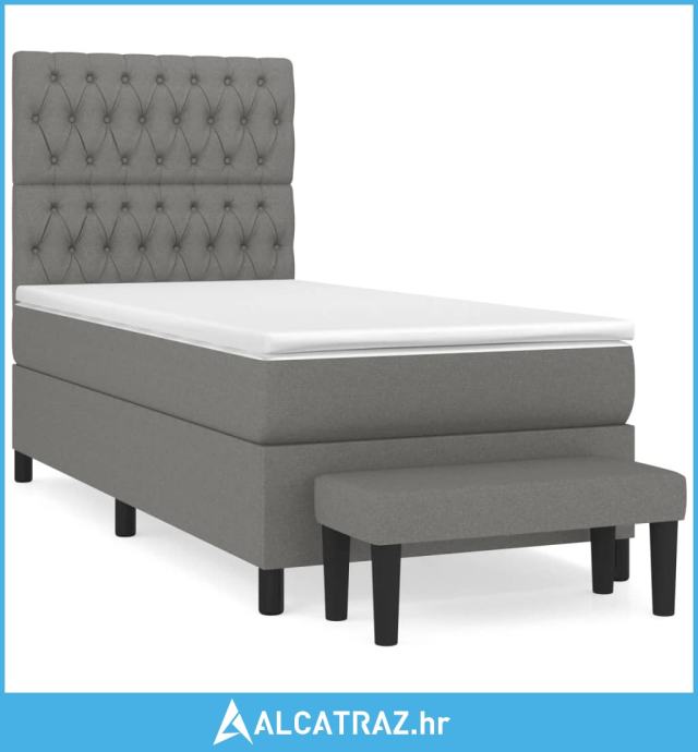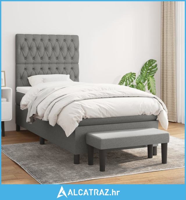 Krevet s oprugama i madracem tamnosivi 90x200 cm od tkanine - NOVO