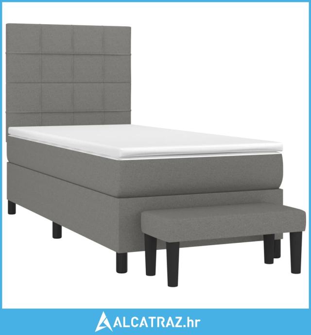 Krevet s oprugama i madracem tamnosivi 90x200 cm od tkanine - NOVO