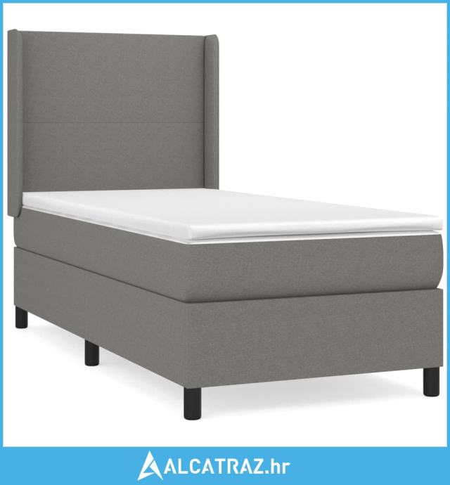 Krevet s oprugama i madracem tamnosivi 90x200 cm od tkanine - NOVO