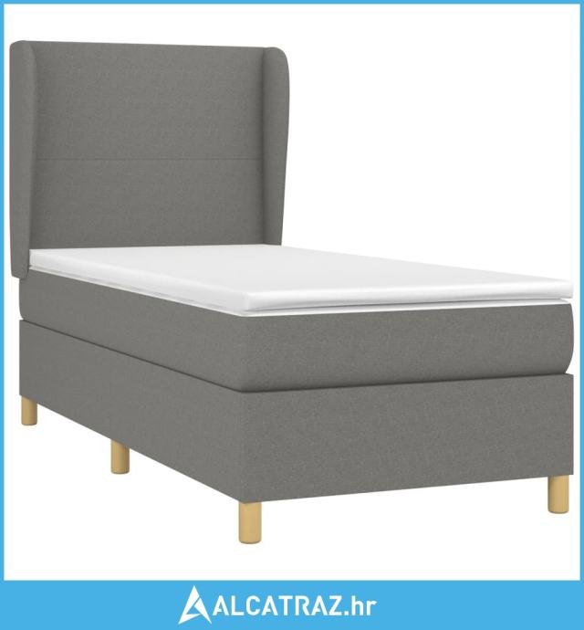 Krevet s oprugama i madracem tamnosivi 90x200 cm od tkanine - NOVO