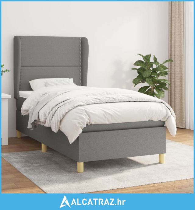 Krevet s oprugama i madracem tamnosivi 90x200 cm od tkanine - NOVO