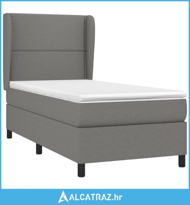 Krevet s oprugama i madracem tamnosivi 90x200 cm od tkanine - NOVO