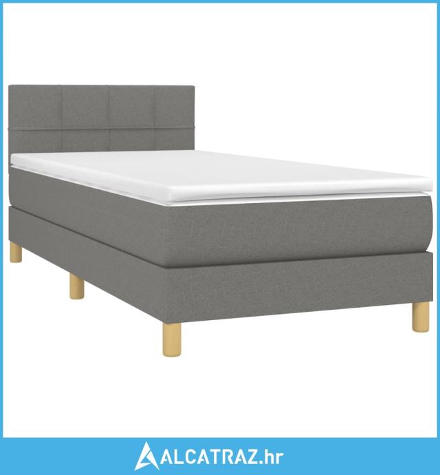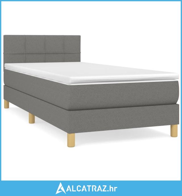 Krevet s oprugama i madracem tamnosivi 90x200 cm od tkanine - NOVO