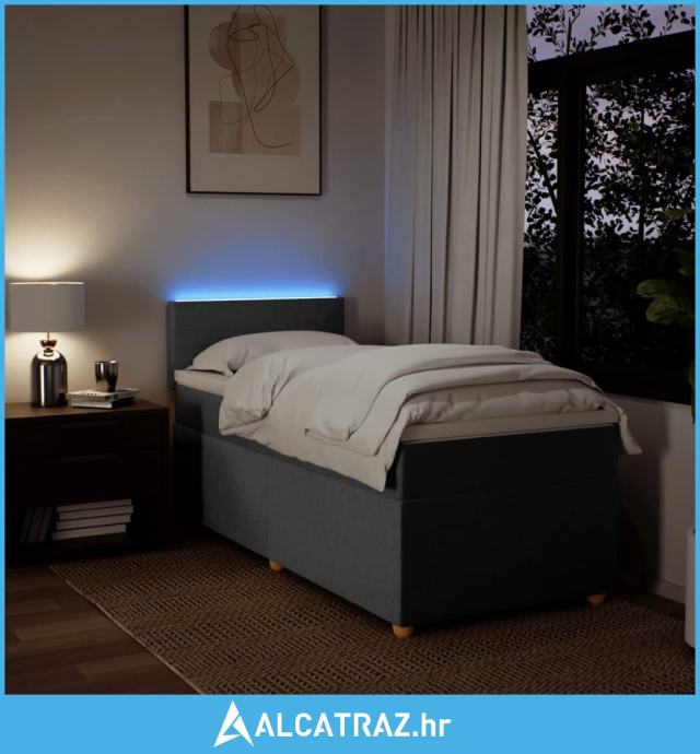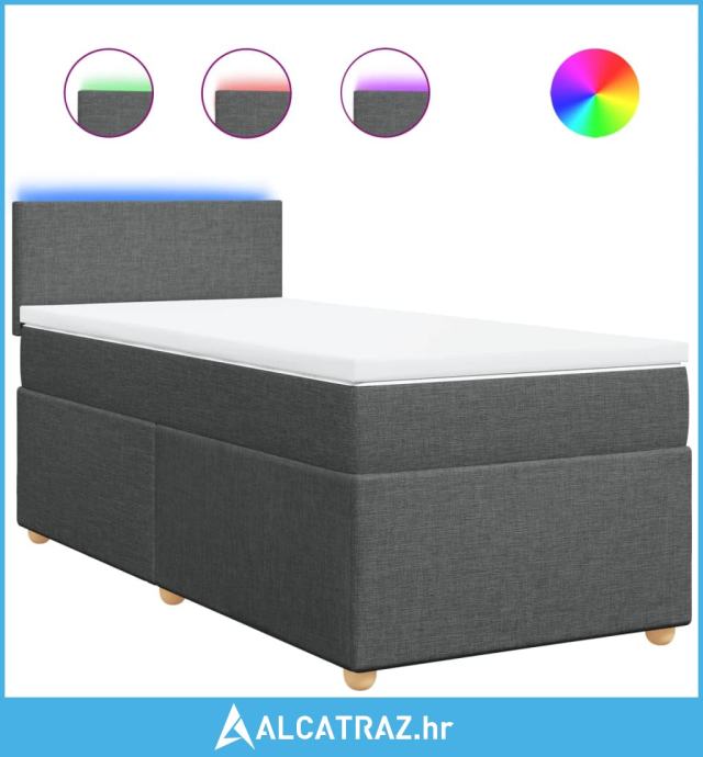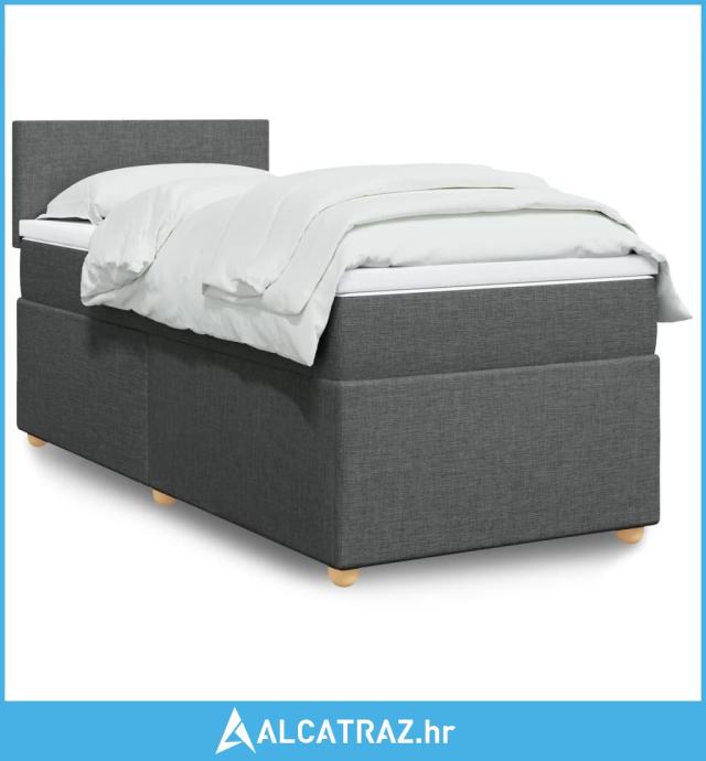 Krevet s oprugama i madracem tamnosivi 90x200 cm od tkanine - NOVO