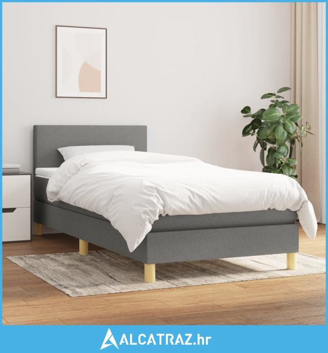 Krevet s oprugama i madracem tamnosivi 90x200 cm od tkanine - NOVO