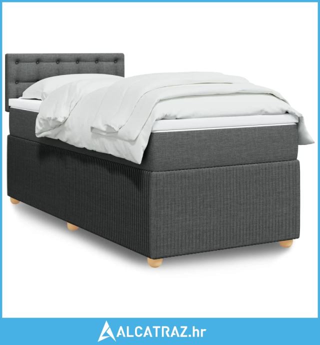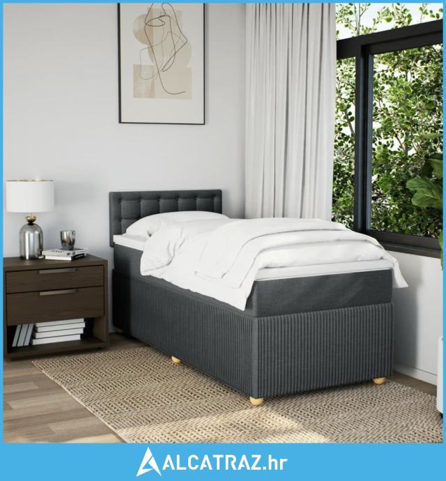 Krevet s oprugama i madracem tamnosivi 90x200 cm od tkanine - NOVO