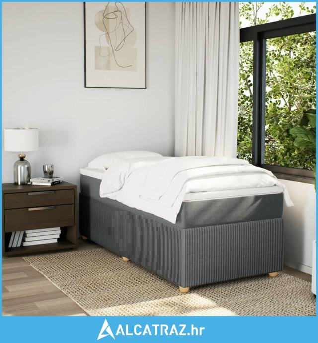 Krevet s oprugama i madracem tamnosivi 90x200 cm od tkanine - NOVO