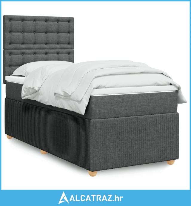 Krevet s oprugama i madracem tamnosivi 90x200 cm od tkanine - NOVO