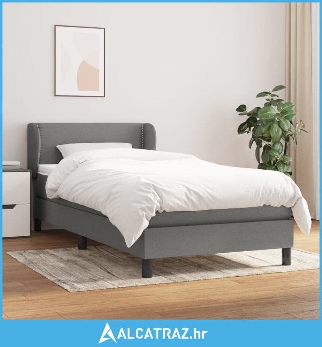 Krevet s oprugama i madracem tamnosivi 90x200 cm od tkanine - NOVO