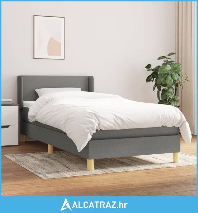 Krevet s oprugama i madracem tamnosivi 90x200 cm od tkanine - NOVO