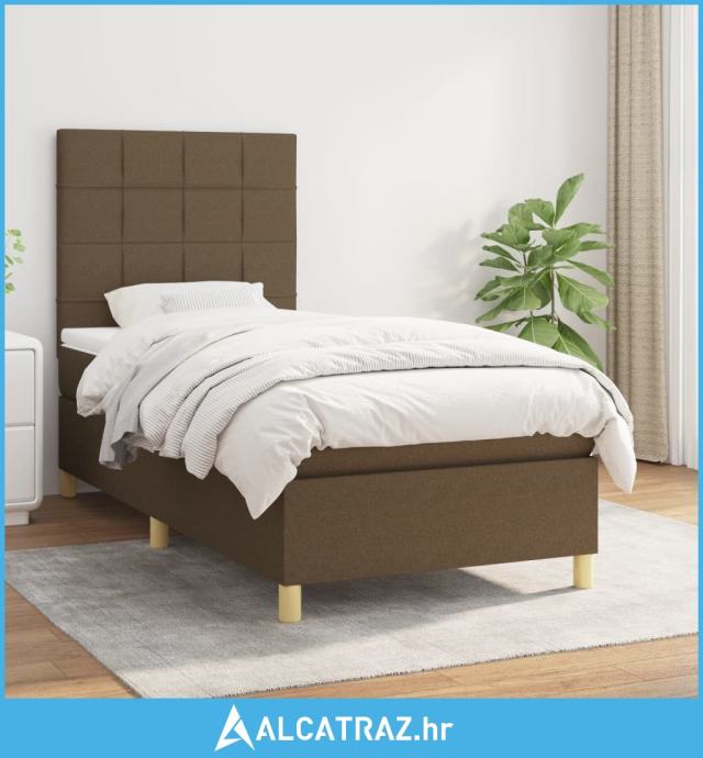 Krevet s oprugama i madracem tamnosmeđi 100 x 200 cm od tkanine - NOVO