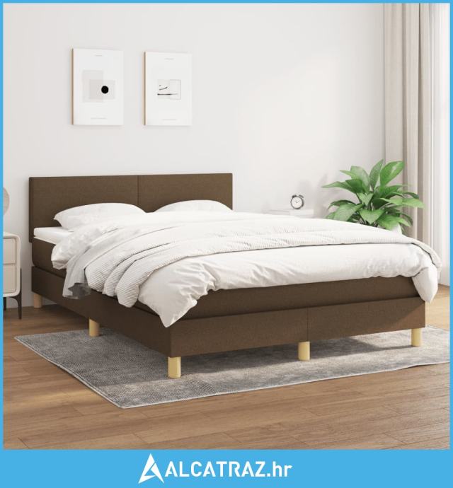 Krevet s oprugama i madracem tamnosmeđi 140x200 cm tkanina - NOVO