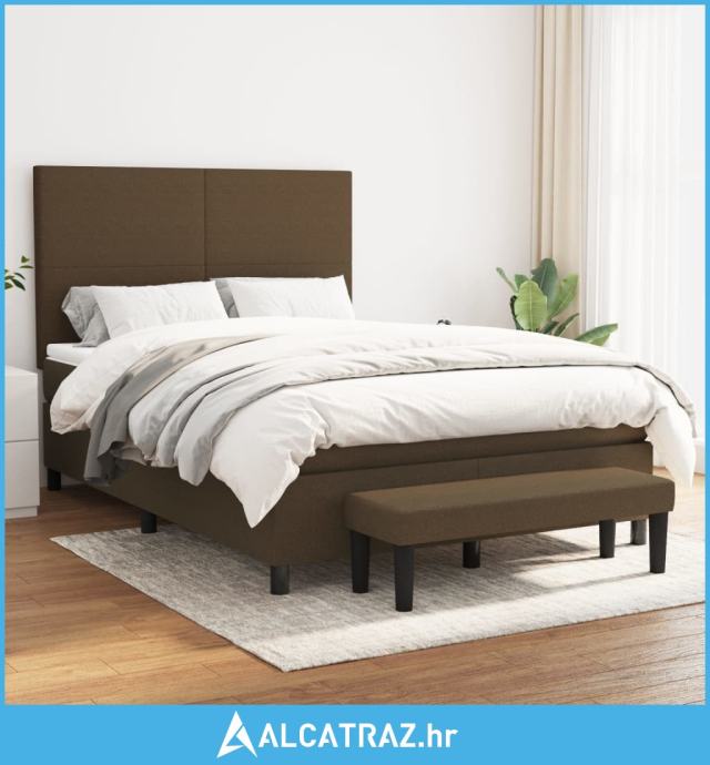 Krevet s oprugama i madracem tamnosmeđi 140x200 cm tkanina - NOVO
