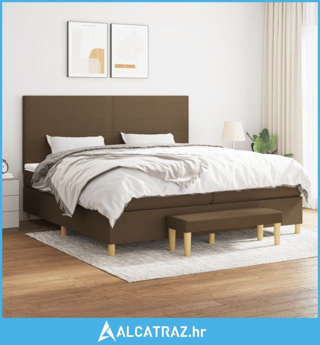 Krevet s oprugama i madracem tamnosmeđi 200x200 cm od tkanine - NOVO