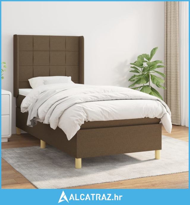Krevet s oprugama i madracem tamnosmeđi 90 x 190 cm od tkanine - NOVO