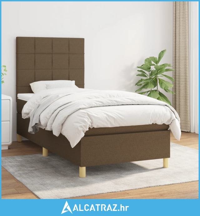 Krevet s oprugama i madracem tamnosmeđi 90 x 190 cm od tkanine - NOVO