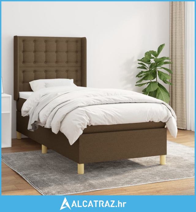 Krevet s oprugama i madracem tamnosmeđi 90 x 200 cm od tkanine - NOVO