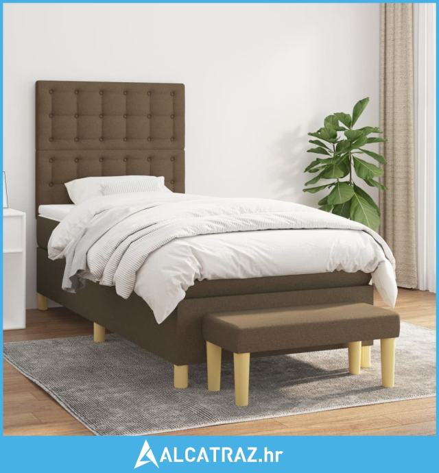 Krevet s oprugama i madracem tamnosmeđi 90 x 200 cm od tkanine - NOVO