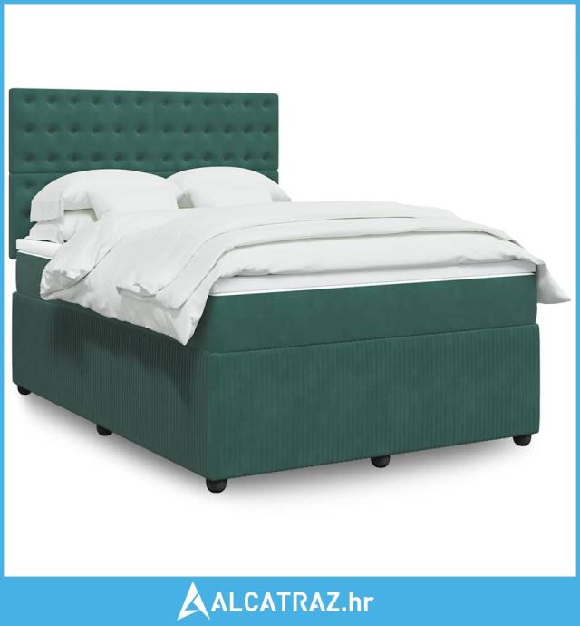 Krevet s oprugama i madracem tamnozeleni 140x190 cm baršunasti - NOVO